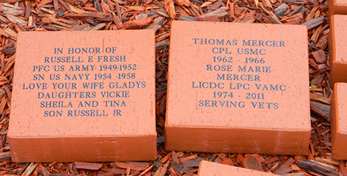| These custom laser etched paving bricks line the walk way in the Ohio Veterans' Memorial Park. These kiln fired bricks are extremely wear resistant and will hold up for generations.